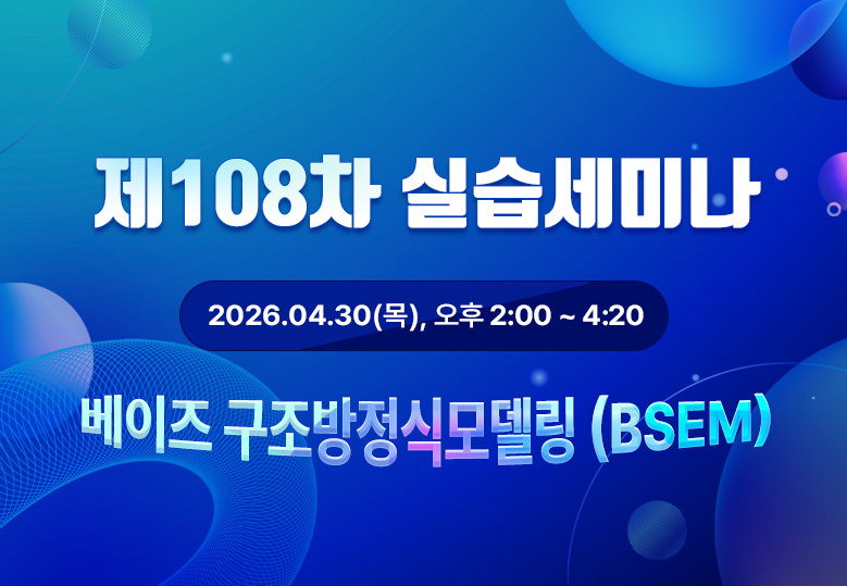 '베이즈 구조방정식(BSEM)'을 주제로 108차 실습세미나가 개설되었습니다.